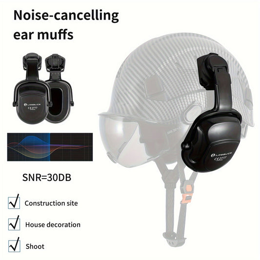 1 Set LOEBUCK Safety Helmet With Visor And Earmuffs, Logging Chainsaw Helmet, Carbon Fiber Patterned Safety Helmet For Lawn Mowing, Black Graphite Pattern, With Smoked Mask And Earmuffs