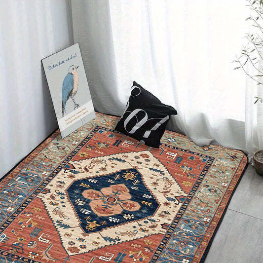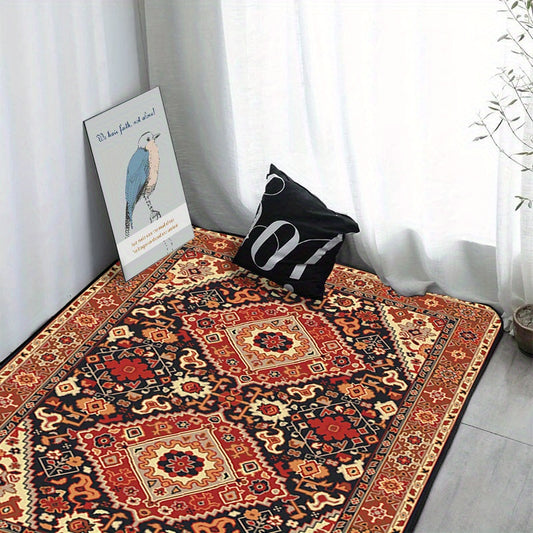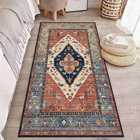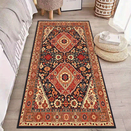 Tapete vintage boho, 1 peça, macio e espesso, em veludo cristal, felpudo e anti-fadiga, antiderrapante e lavável à máquina, ideal para entrada, sala de estar, quarto ou quarto.