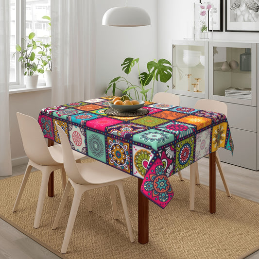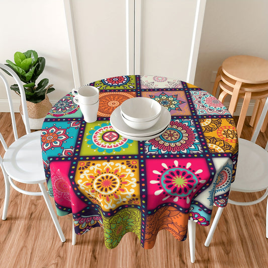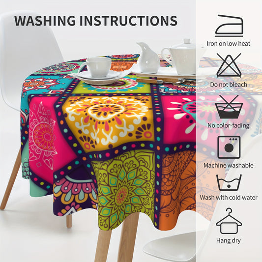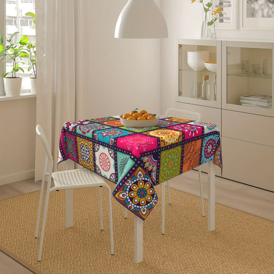 1 peça, Toalha de Mesa Retangular em Poliéster, Toalha de Mesa Mandala Boémia, Toalha de Mesa Circular Colorida para Decoração de Festas e Festivais, Decoração para Casa