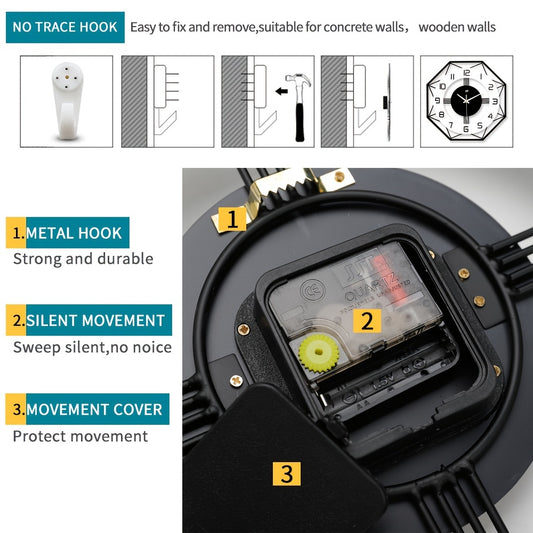 1 unidade, Relógio de Parede Moderno e Silencioso para Decoração de Salas, Ideal para Casa, Cozinha, Quarto, Casa de Banho e Ambientes Exteriores. Funciona com bateria e funciona com quartzo.