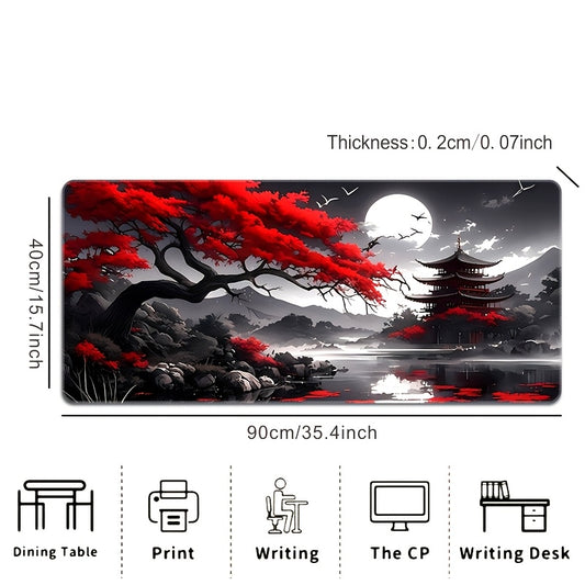 1pc, Traditional Japanese Landscape Mouse Pad, 59.94 x 34.8 cm, Extended Size, Durable Rubber Base, Non-Slip, HD Printed Antique Attic Design, Office & Gaming Mousepad, Durable Stitching, Ideal Gift for Gamers & Office Use