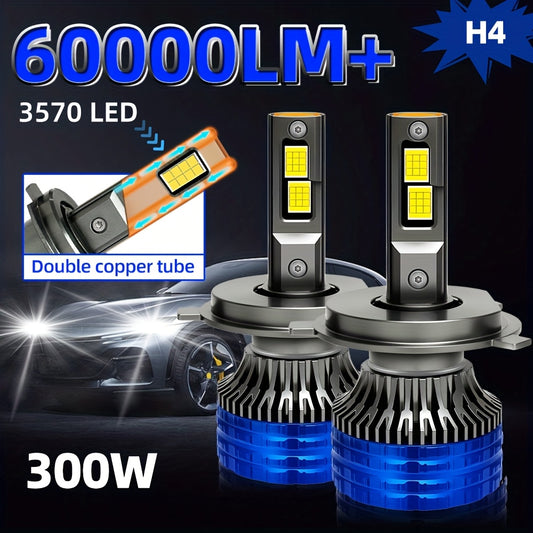 2pcs H4 H7 Car Bulb LED Headlights With 300W High Power 60000LM, Compatible with Canbus And Various Models Including H1, H11 H8 H9, HB3 9005, HB4 9006, 12V 24V, Featuring Turbo Lamp at 6000K for Vehicles, Without Battery