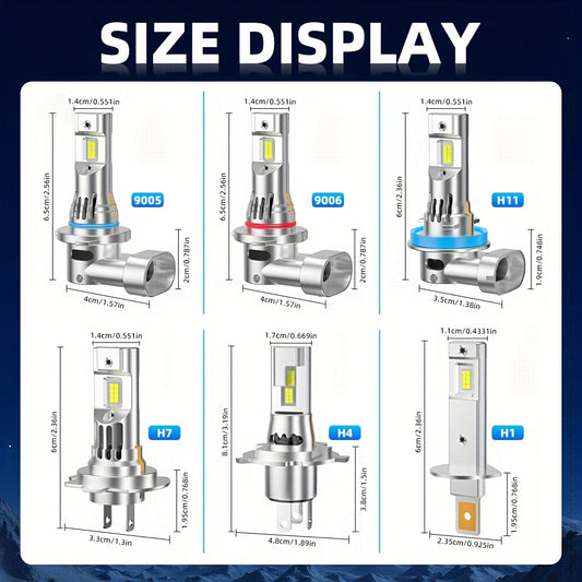 2pcs H7 H11 H1 9005/HB3 9006/HB4 H4 LED Car Headlight, High Low Beam Bulbs 200W/Pair 35000LM/Pair Cold-White 6500K, Decoding Error Free Plug-N-Play Aluminum Body Made, Error Free Installation, Modern Headlights, Heatresistan