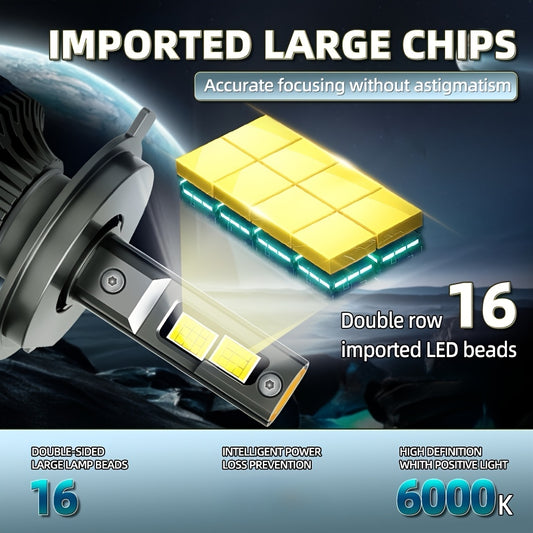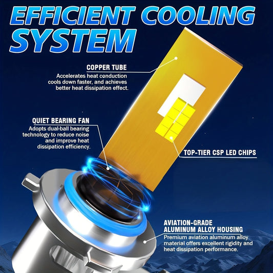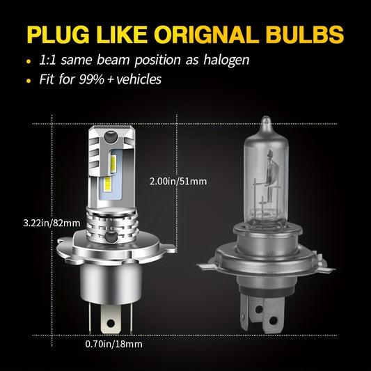 2pcs H4 9003 HB2 LED Headlight Bulbs - 20000LM Super Bright, 12V, High & Low Beam with Fan, White, Fit for Cars, Trucks, SUVs, Motorcycles, Vehicle Lighting Upgrade, Sleek Bulb Design, Durable Construction, Without Battery