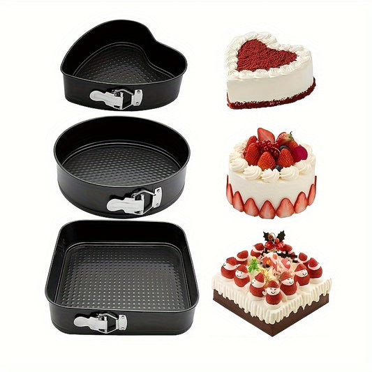 3pcs Christmas Baking Set, Carbon Steel Cake Pans with Detachable Base, Multi-Shaped Heart & Round Polycarbonate Molds, for Creative Cooking & Kitchen Supplies