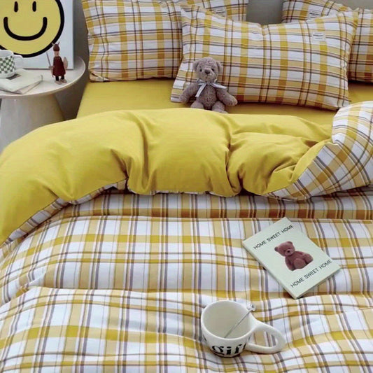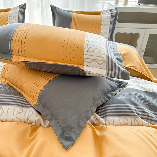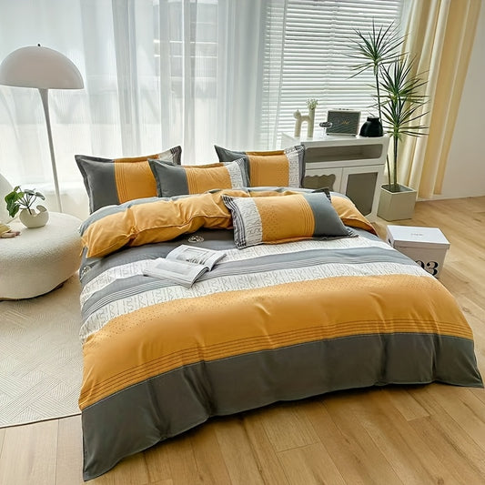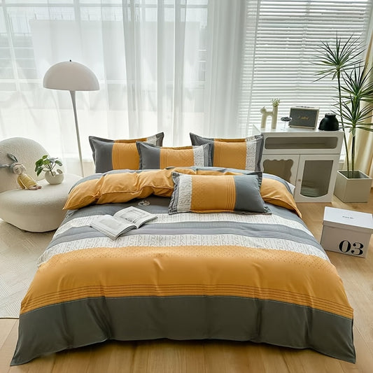 4pcs quilt set (1*quilt cover + 1*bed sheet + 2*pillowcases, excluding quilt core), yellow and white line printed bedding set, soft and comfortable four-season quilt cover, suitable for bedroom and guest room