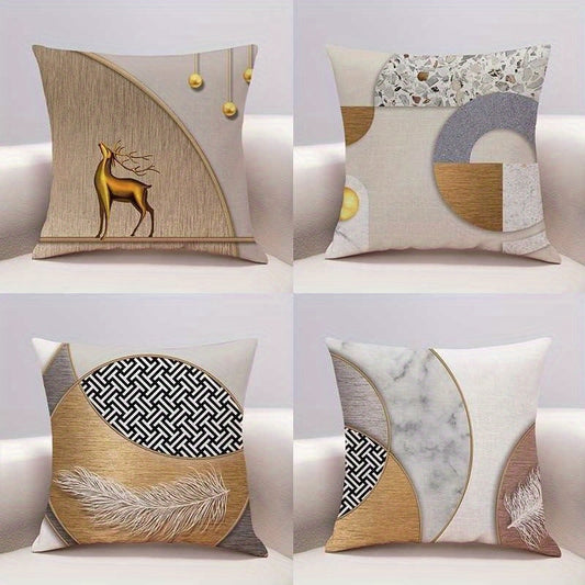 Conjunto de 4 almofadas decorativas modernas e minimalistas - Tecido macio, tons terra e padrões abstratos para sala de estar, quarto e sofá - Laváveis à máquina com fecho de correr, almofadas para sofá, conforto no quarto, estilo contemporâneo.