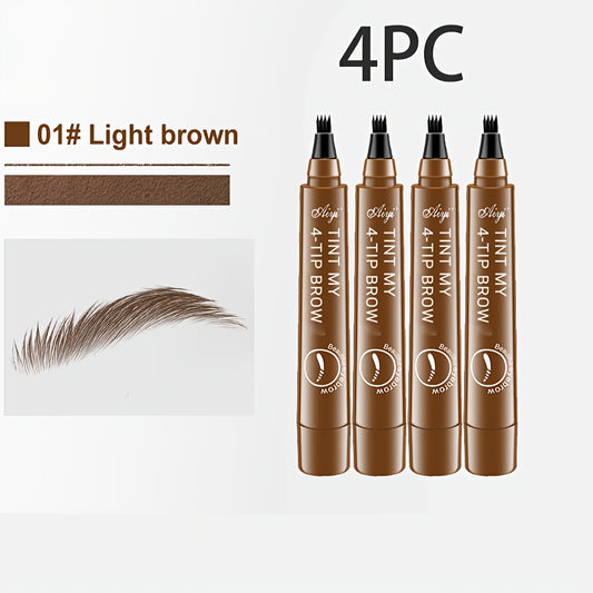 Conjunto de 4 Lápis de Sobrancelhas Profissionais para Maquilhagem, Ultrafinos, com 4 Pontas, À Prova de Água e Resistente ao Suor, Aparência Natural 3D, Definição Realista, Sem Borrões, Preto - Presente Perfeito para o Natal ou Aniversário