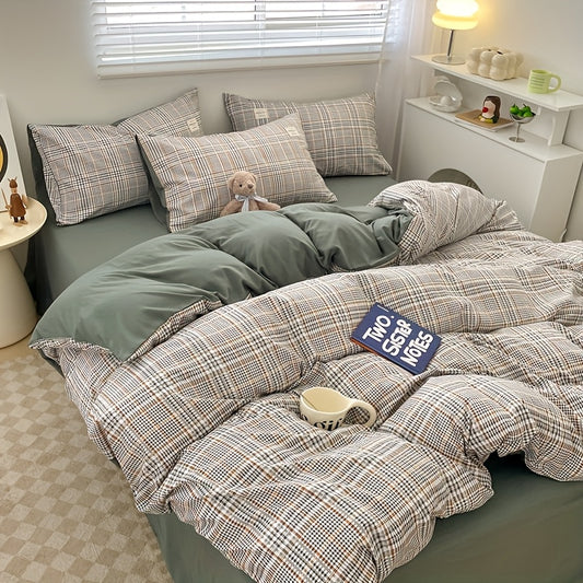 Conjunto de quatro peças: capa de edredão, lençol e fronha. Macio e confortável, com design de dupla face AB, toque fresco e agradável. Lavável à máquina, suave para a pele. Ideal para quartos e dormitórios.