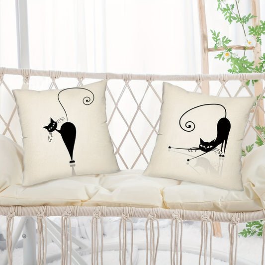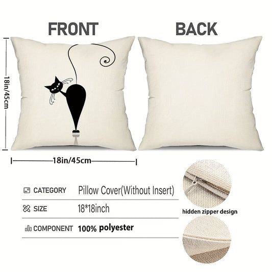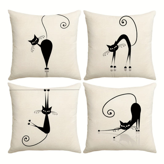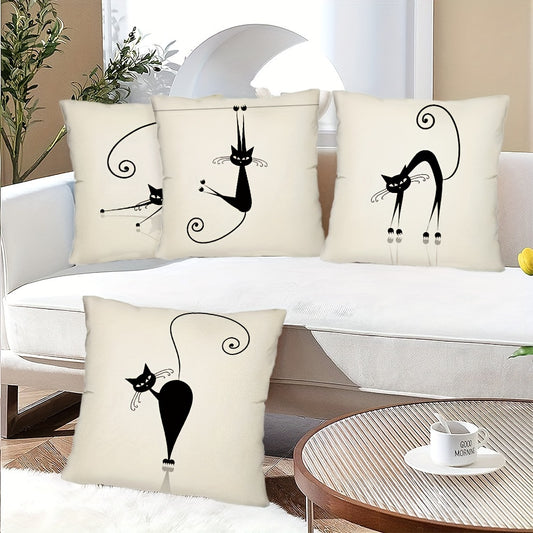 4pcs Playful Black Cat Throw Pillow Covers | Boho Chic Decorative Cushion Covers, 44.96x44.96 cm, Polyester with Zip Closure | Ideal for Sofa, Bedroom, Office & Farmhouse | Hand Washable, Paisley Pattern, Decorative Pillows