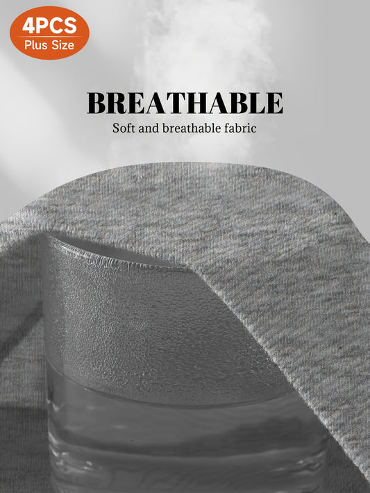 Conjunto de 4 cuecas modeladoras plus size de cintura subida com controlo abdominal, em malha respirável, sem costuras e com detalhe cruzado.