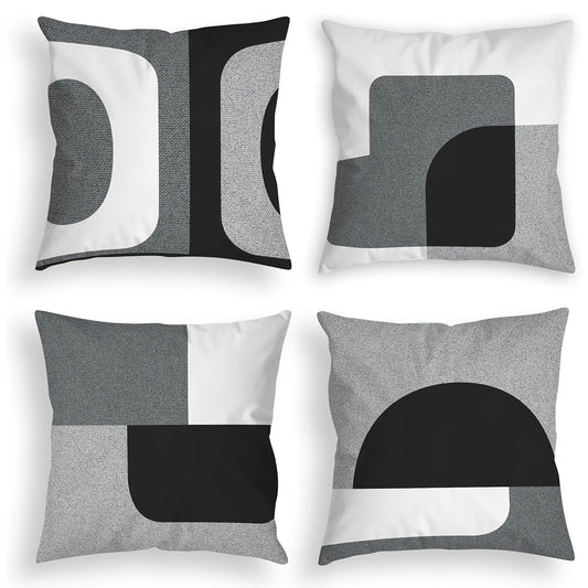 4pcs Modern Geometric Throw Pillows - Black & White Abstract Print, 4 Unique Designs, Soft Durable Fabric with Zipper Closure, Hand Wash Only for Living Room, Bedroom, Sofa Decor, Throw Pillows for Couch, Bedroom Accessories,