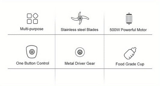 Liquidificador portátil pessoal de 500 W com processador de alimentos, taça picadora, jarro para sumo de 600 ml, picador de carne e ideal para crianças.