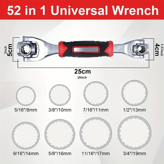 Jogo de chaves de caixa 52 em 1 com cabo antiderrapante e design giratório - Durável e fácil de utilizar para diversas tarefas.