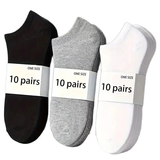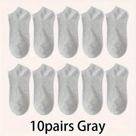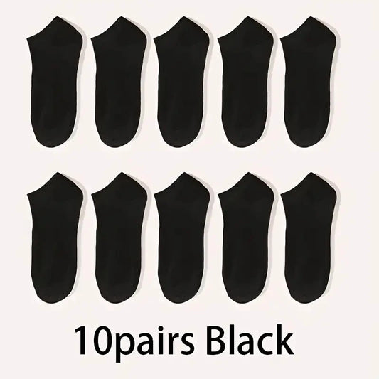 Pack de 5/10 pares de meias de cano curto unissexo, confortáveis, respiráveis e leves - ideais para desporto e uso diário.