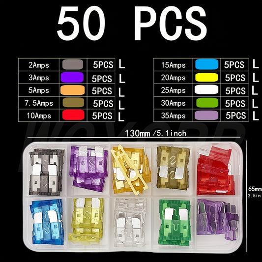 Kit de Fusíveis Automóveis Combinados de 50/100/120/280/306 peças, Classe Média, Tipo Lâmina, para Substituição de Fusíveis em Veículos Marítimos, Automóveis, Camiões e Eléctricos - 2A, 3A, 5A, 7,5A, 10A, 15A, 20A, 25A, 30A e 35A