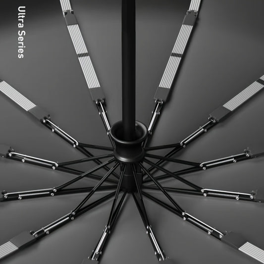 Guarda-chuva resistente com abertura/fecho automático, 12 varetas, pega em madeira maciça (bétula/faia) - Ampla cobertura, resistente ao vento e dobrável, ideal para homens, negócios e viagens - Cor sólida (bordô/preto/azul-marinho)