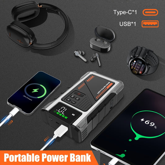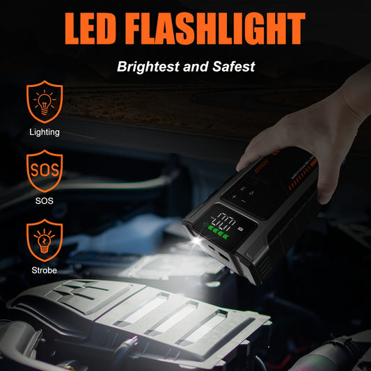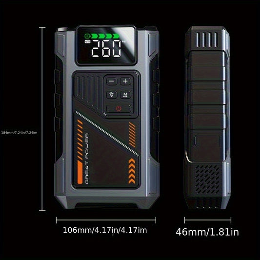 12000mAh Jump Starter Power Pack, 6000A Car Battery Booster 12V Jump Starter with 150PSI Tire Inflator Portable Air Compressor, with LCD Display, Jump Starter Power Bank (7.5L Gas/6L Diesel), LED Light, Vehicle Maintenance To