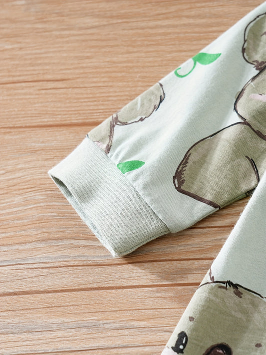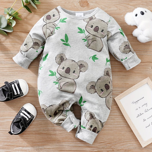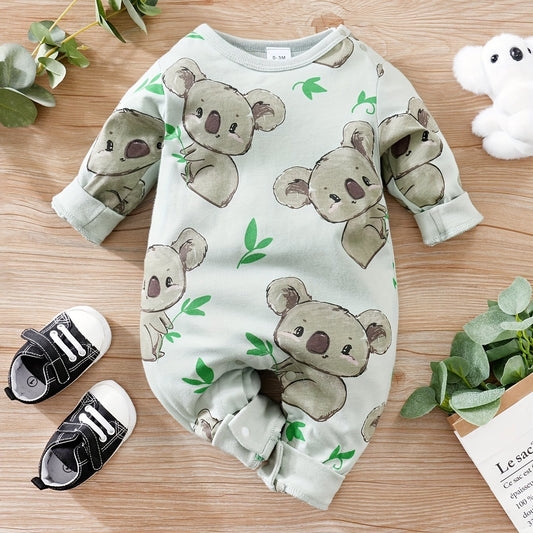 Macacão de manga comprida com gola redonda para bebé com estampado fofo de coala de desenho animado