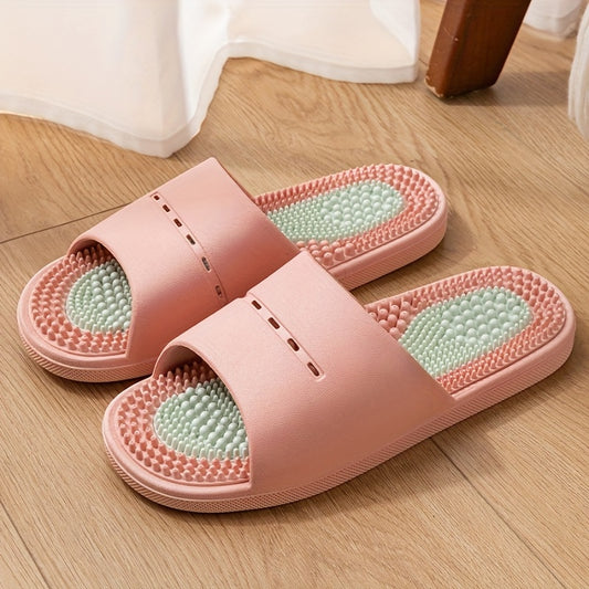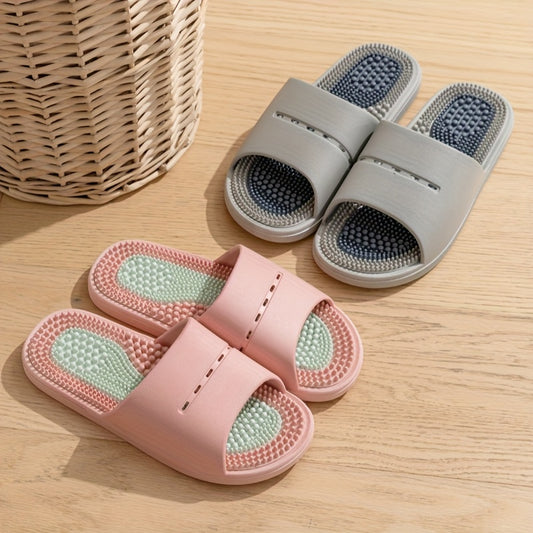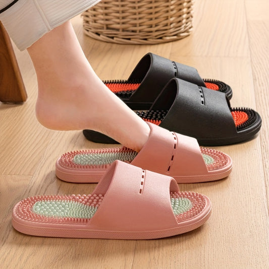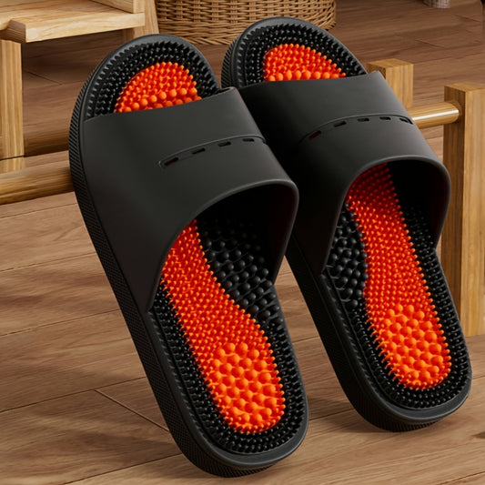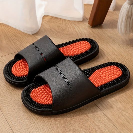 Color-Block Slides - Comfortable PVC Casual Home & Outdoor Sandals, Soft Sole, Fashionable All-Season Footwear in Black, Orange/Black, and Pink/Greenish-Blue, Ideal for Indoor Leisure