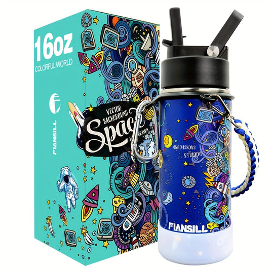 12oz Stainless Steel Vacuum Insulated Water Bottle with Flansill, Leak-Proof, BPA-Free, Portable, Ideal for Students, Daily Hydration Gift for Son and Daughter, Independence Day, Thanksgiving, New Year, Labor Day, Kids