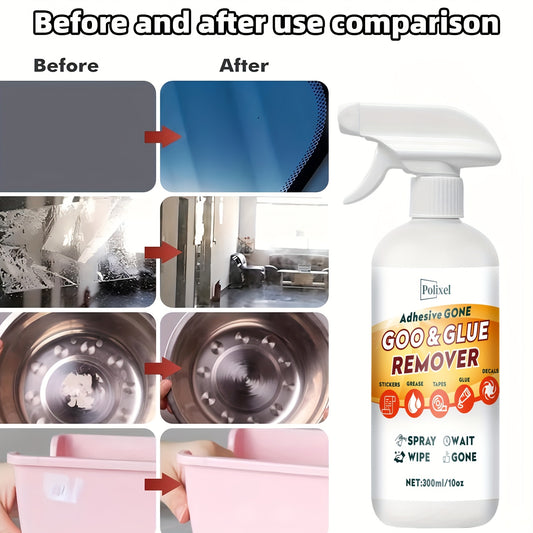 Glue Adhesive Remover, Sticker Residue Removal Spray Easily Takes Off Tape, Labels, Rubber and Film Residue from Glass & Plastic with Scraper & Towel, Wave Goodbye to Sticky Situations - 300ml/10oz