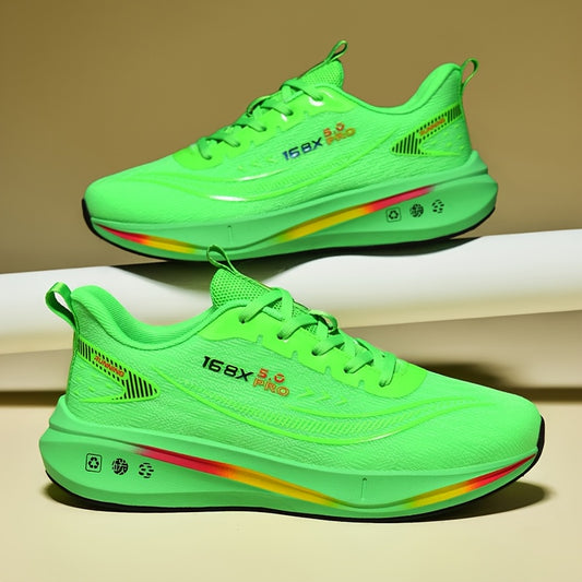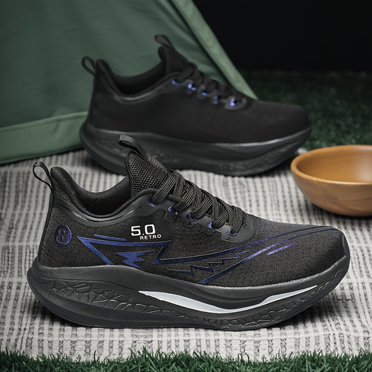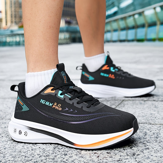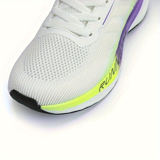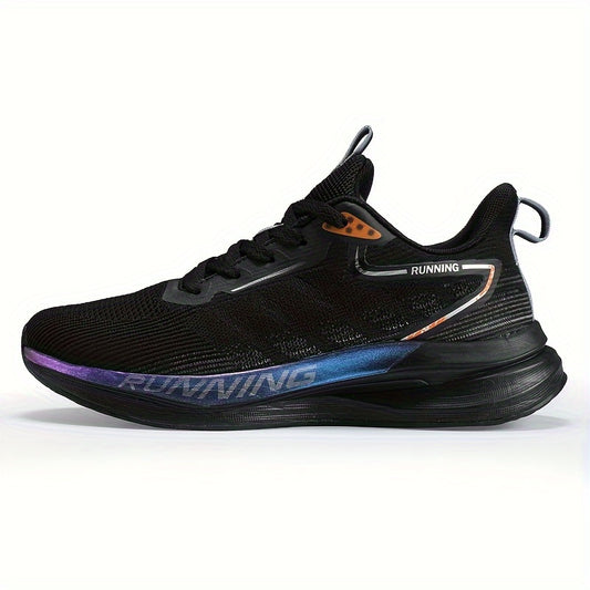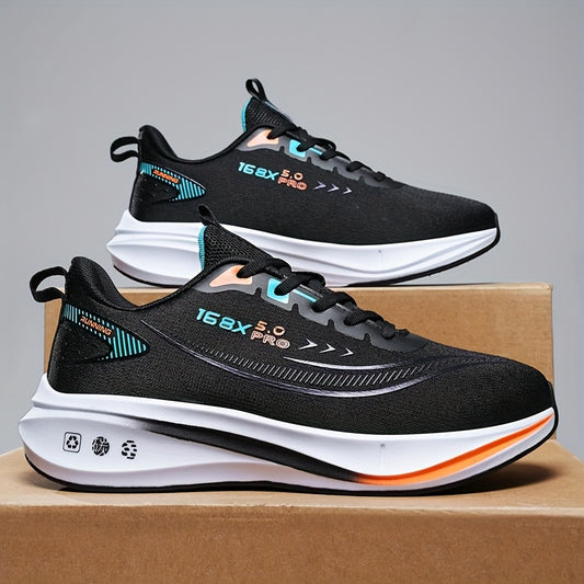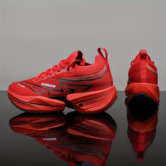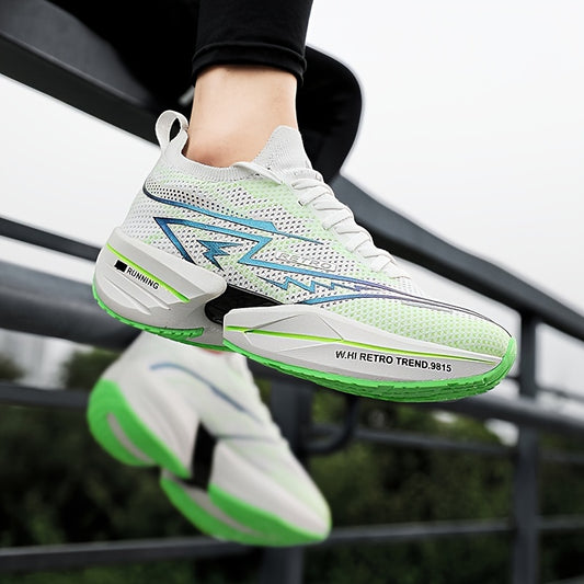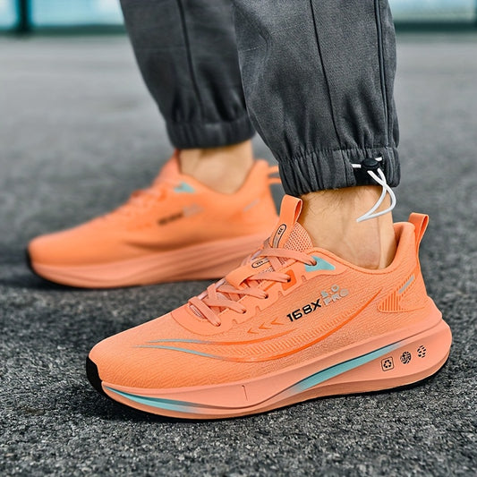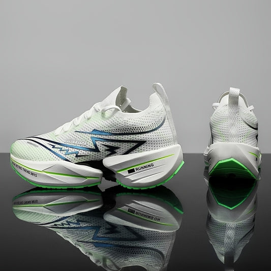 Men's mid-calf running shoes, breathable lightweight carbon plate, striped pattern, suitable for all seasons, lace-up closure, fabric upper and lining, rubber sole, MD outsole, cloth insoles, ideal for casual running, hiking,