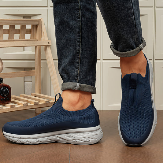 Ténis Slip-On para Homem - Calçado de Corrida Respirável com Estampado Geométrico e de Letras para Ginásio e Uso Casual
