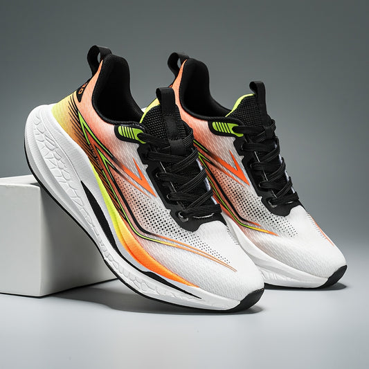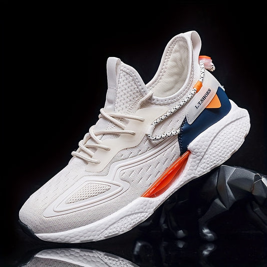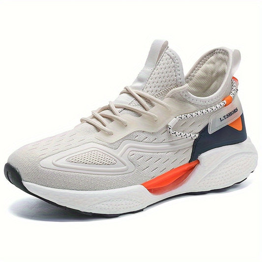 Unisex Professional Running Shoes - Lightweight Breathable Design with Stability Support, All-Season Low-Top Sneakers for Gym, Hiking, Commuting & Outdoor Activities - White & Orange Accents, Gym Shoes, Hiking Footwear, Moder