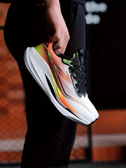 Unisex Gradient Color Breathable Running Shoes - Lightweight Cushioned EVA/TPR Sole, Geometric & Letter Print Design for Road Running, Gym, Casual Wear - All-Season Comfort Low-Top Sneakers, Gym Shoes, Athletic Footwear, Styl
