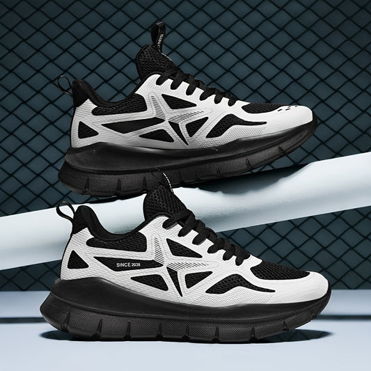 Unisex Classic Low-Top Sneakers - Breathable Fabric & EVA Cushioned Sole, Geometric Letter Print Design for Hiking, Running, Casual Streetwear - All-Season Comfort, Hiking Shoes, Outdoor Sports Footwear, Modern Sneakers, Dura