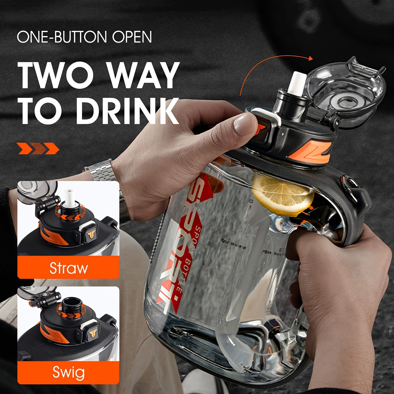 1pc 2.5L/84.54oz Large Capacity Leakproof Straw Water Bottle - Portable, Durable PC Plastic with Flip Top Lid, Ideal for Outdoor Sports, Travel & Fitness, Hydrate in Style with "SPORT" Motivational Design, Sports Water Bottle