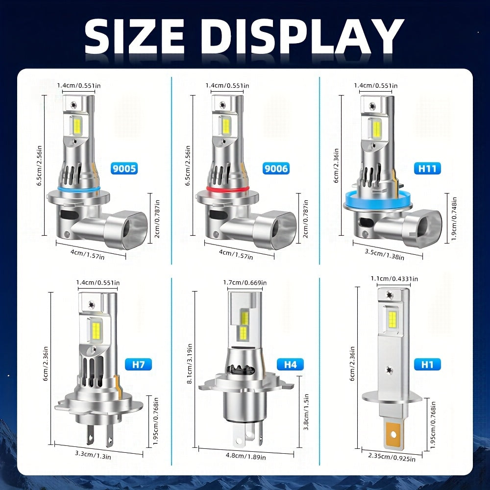 2pcs H7 H11 H1 9005/HB3 9006/HB4 H4 LED Car Headlight, High Low Beam Bulbs 200W/Pair 35000LM/Pair Cold-White 6500K, Decoding Error Free Plug-N-Play Aluminum Body Made, Error Free Installation, Modern Headlights, Heatresistan