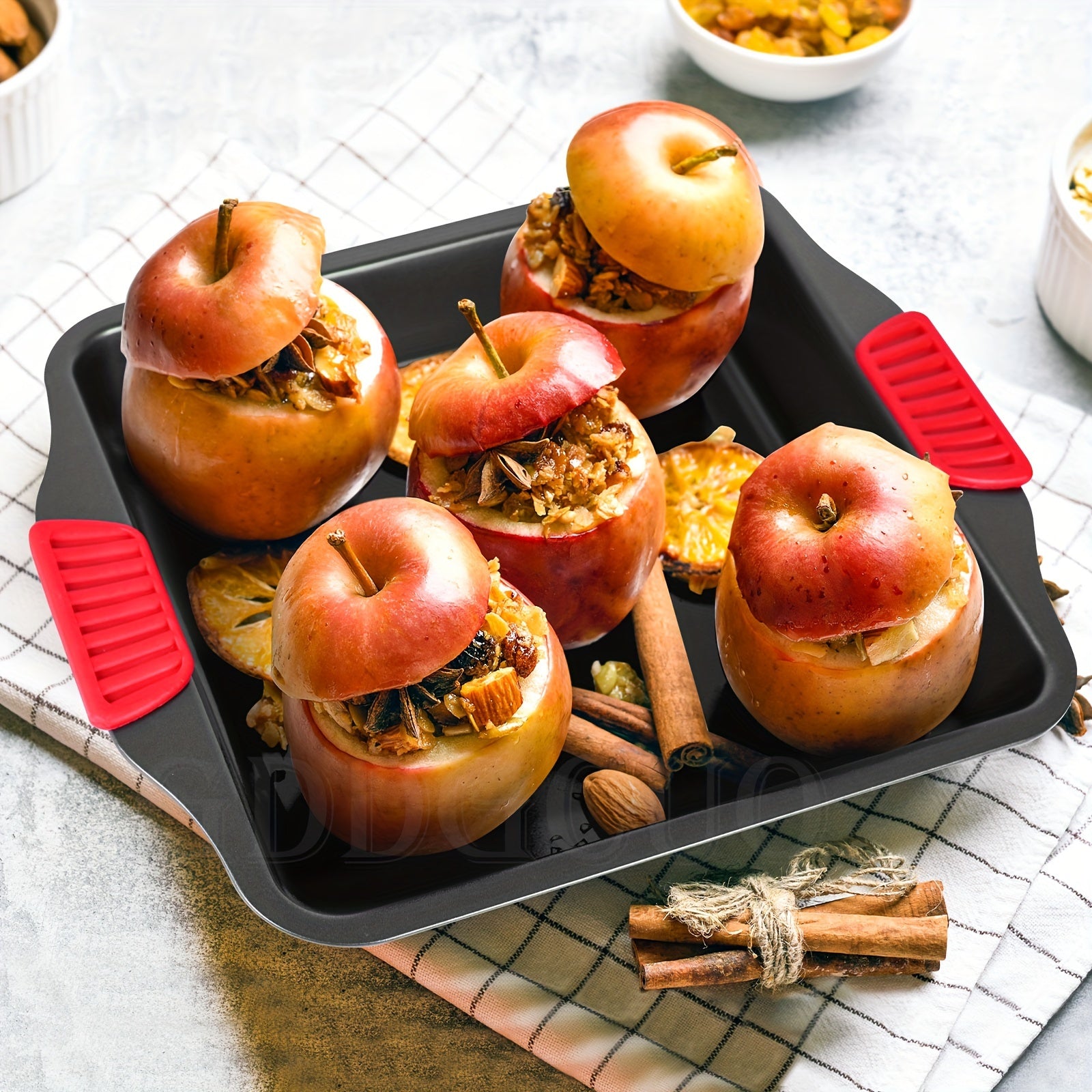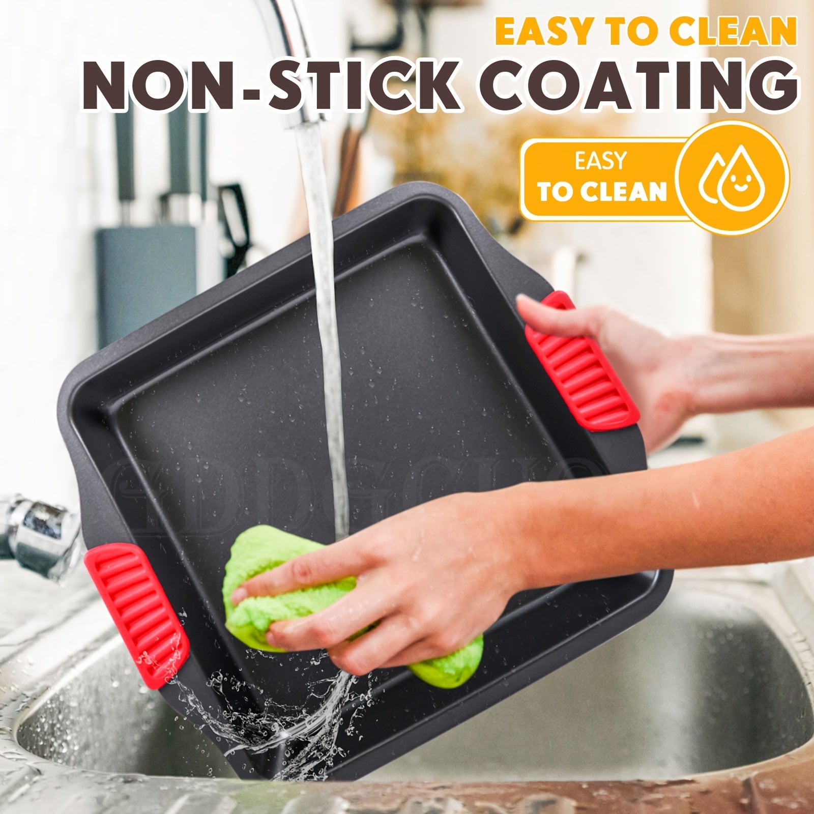 2pcs Set Non-Stick Baking Pan Set - Carbon Steel Baking Pan Set with Heat Resistant Red Silicone Handle, Oven Safe up to 450F (232.2C) Square Frying Pan, Cookie Sheet, Baking Pan, Black