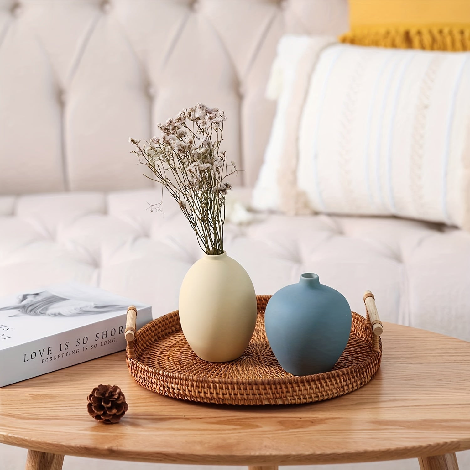 Conjunto de 4 vasos de cerâmica para decoração de mesa estilo quinta, pequenos vasos de flores para mesa de centro, prateleira, sala de jantar, decoração moderna e boho.