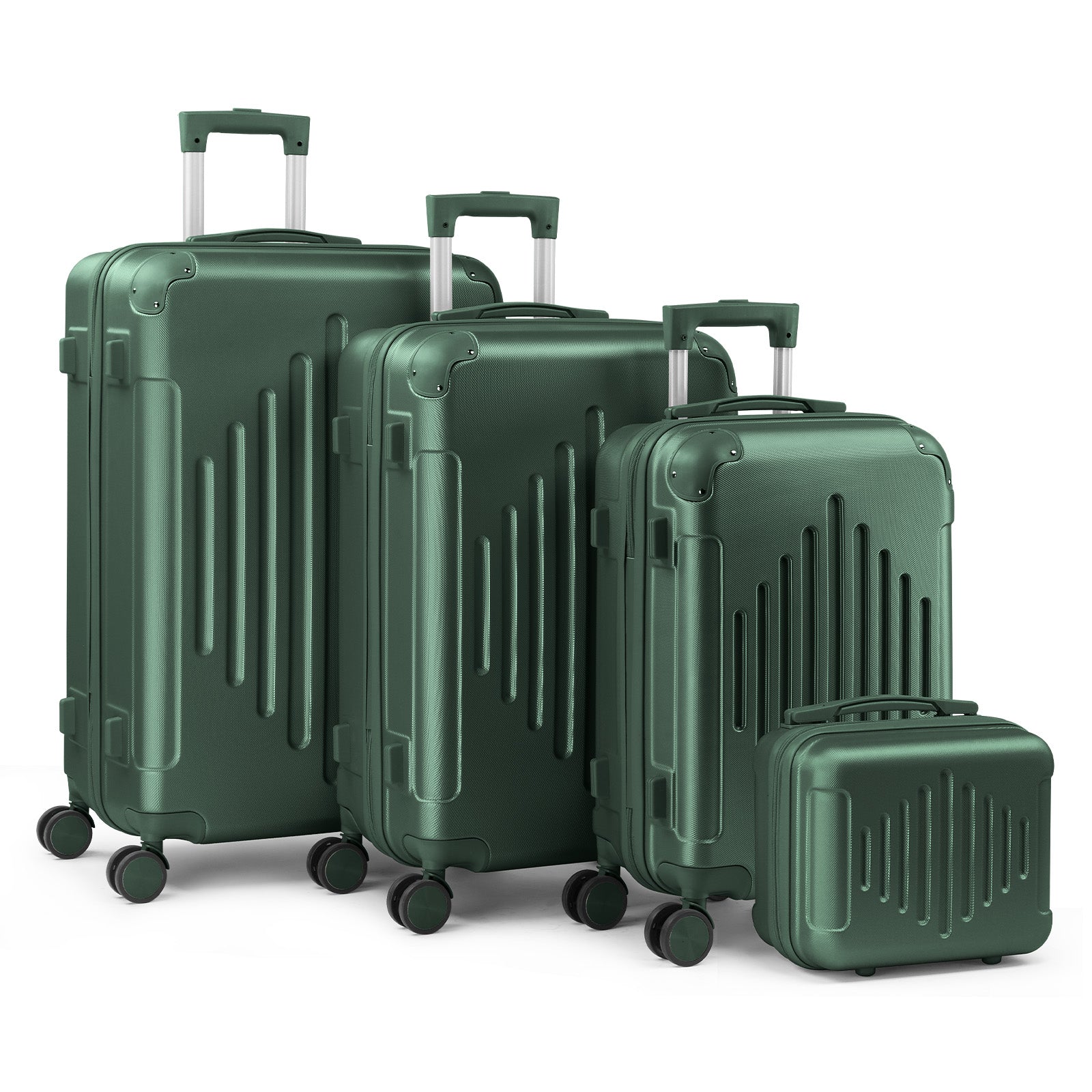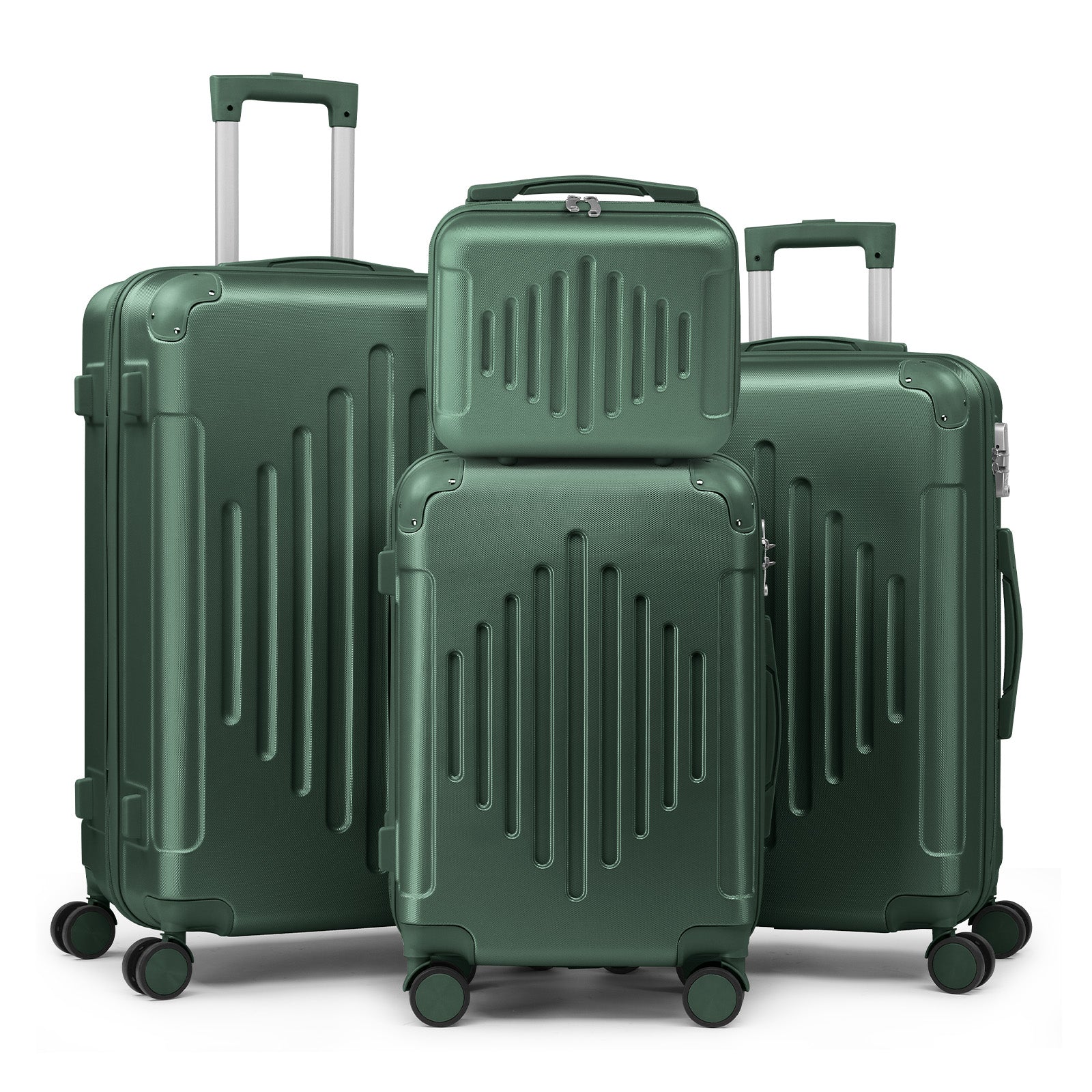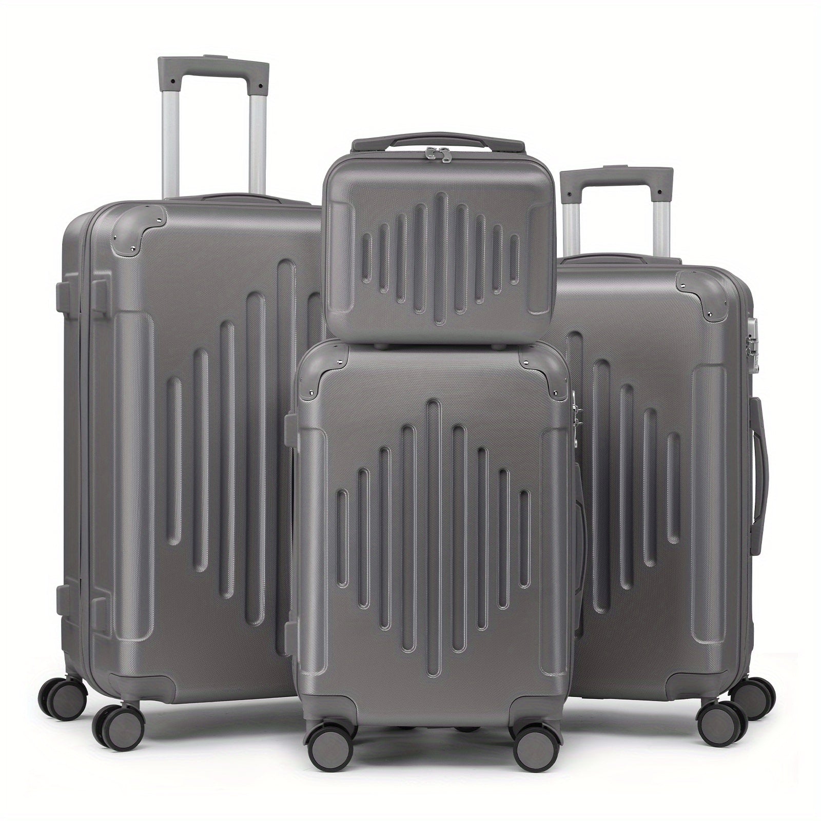 Conjunto de 4 malas com protetores de cantos, tamanhos 12/20/24/28 polegadas, estrutura rígida e resistente, rodas giratórias 360°, multifuncionais, de grande capacidade e leves.