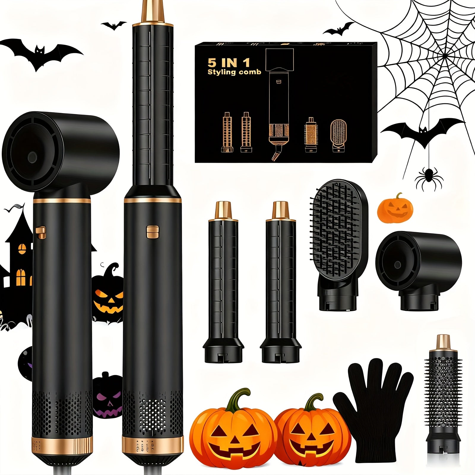 Escova Modeladora de Ar Quente 5 em 1 – Alisador e Modelador de Caracóis Elétrico com Acessórios Intercambiáveis, Escova de Ar Quente para Cabelo Seco ou Molhado, Produtos para Alisar, Secar e Modelar o Cabelo