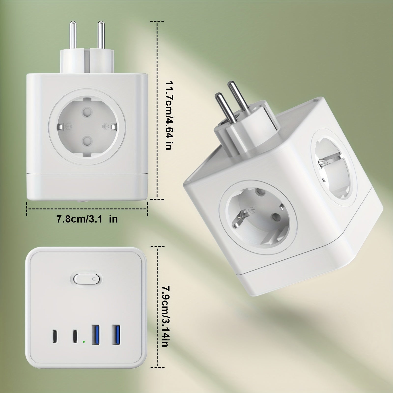 5-in-1 Portable Power Socket Adapter - 4000W Large Capacity, Compact Cube Design with 4 USB Ports & 2 AC Outlets, European Plug, On/Off Switch for Home & Office Appliances, White, Power Adapter for Electronics, Versatile Char