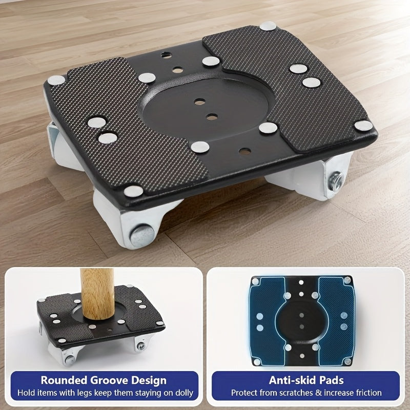 6-Piece Upgraded Furniture Dolly Set, Includes 4 Furniture Movers with 4 Wheels, 1 Pry Bar, 1 Pair of Gloves, Carbon Steel Panel Heavy-Duty Dolly, Furniture Lifter with 4 Universal 360° Swivel Rubber Wheels, Max Load 999.72