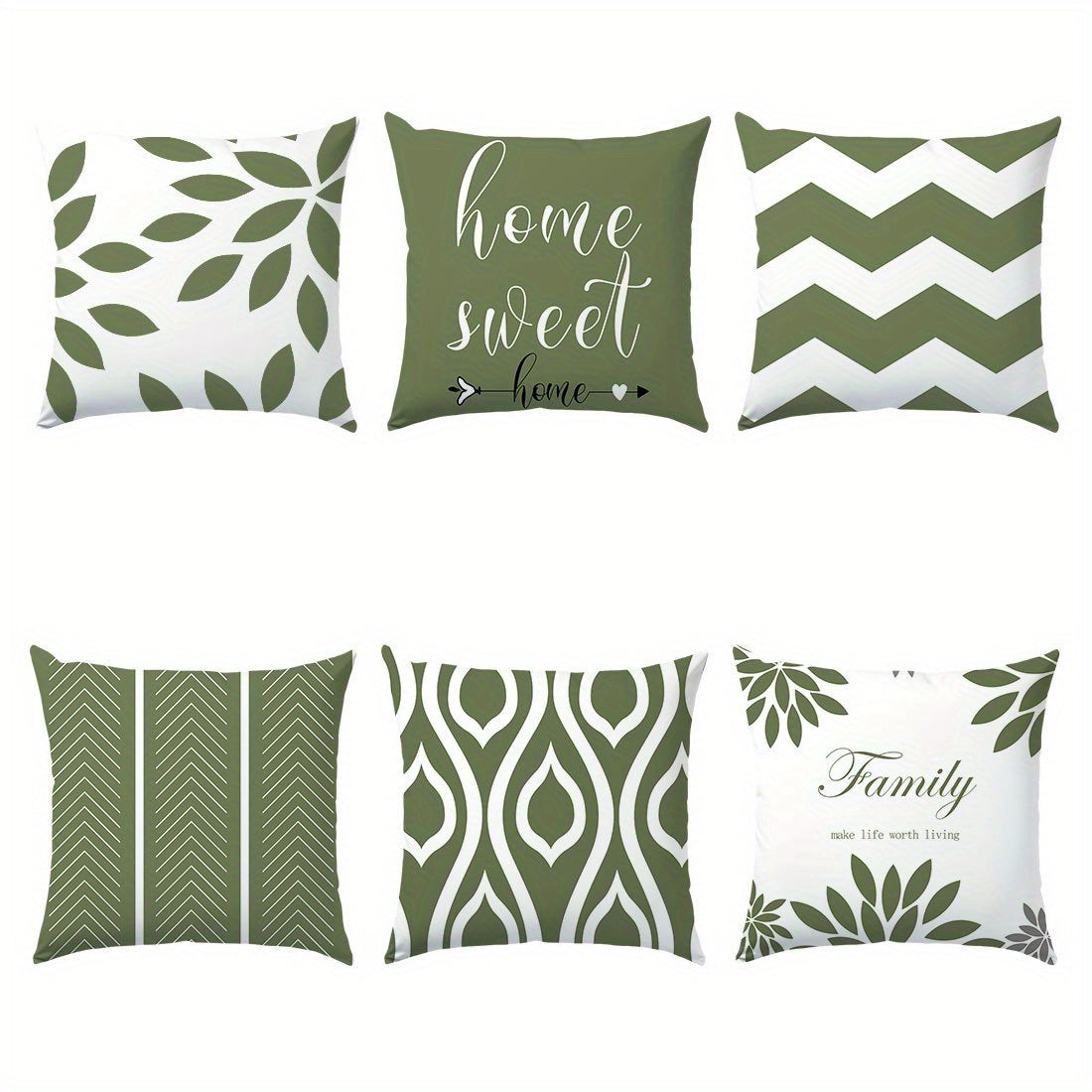 Conjunto de 6 fronhas com estampado geométrico de folhas verdes, impressão num dos lados, com 44,96 x 44,96 cm. Ideais para decoração de sala de estar, sofá e quarto. Não inclui enchimento.