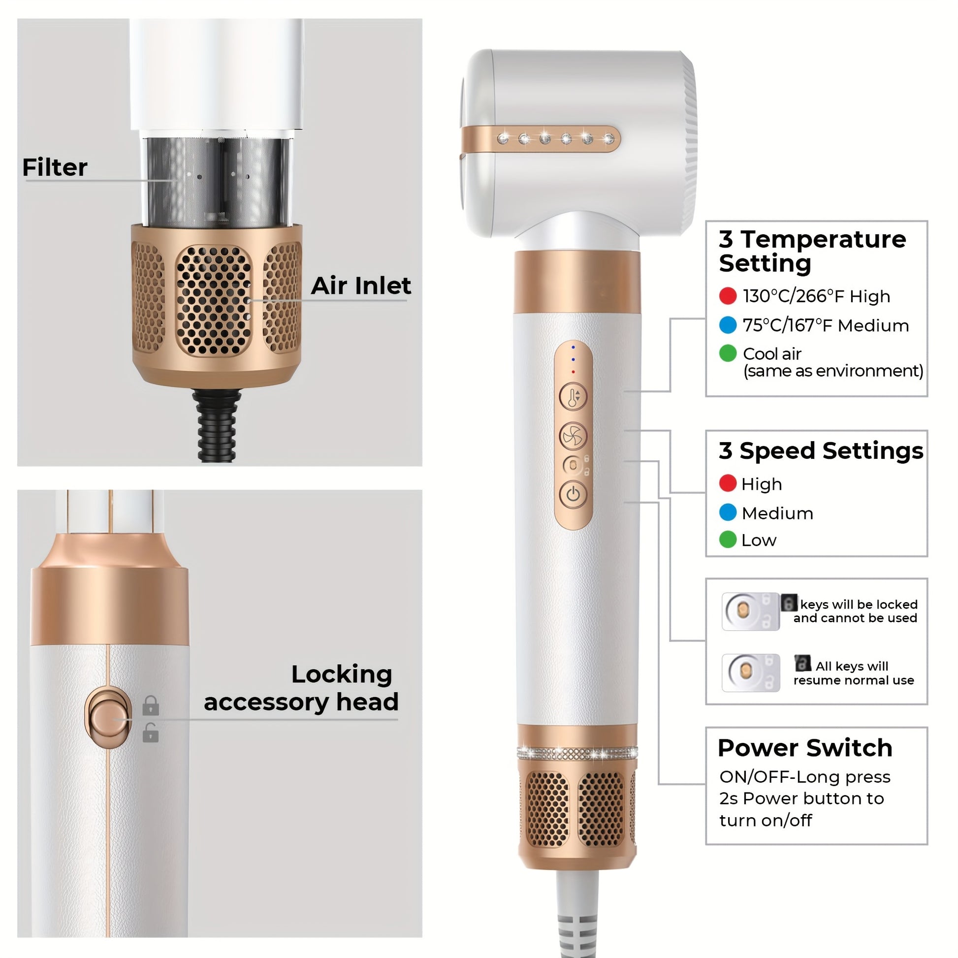 7-in-1 Ionic Hair Dryer Kit, 110000 RPM High-Speed, 1400W, with Diffuser, Automatic Curling Wand, Straightening, and Styling, Hair Dryer for Bathroom, Bathroom Essentials | Modern Hair Dryer | Durable Construction