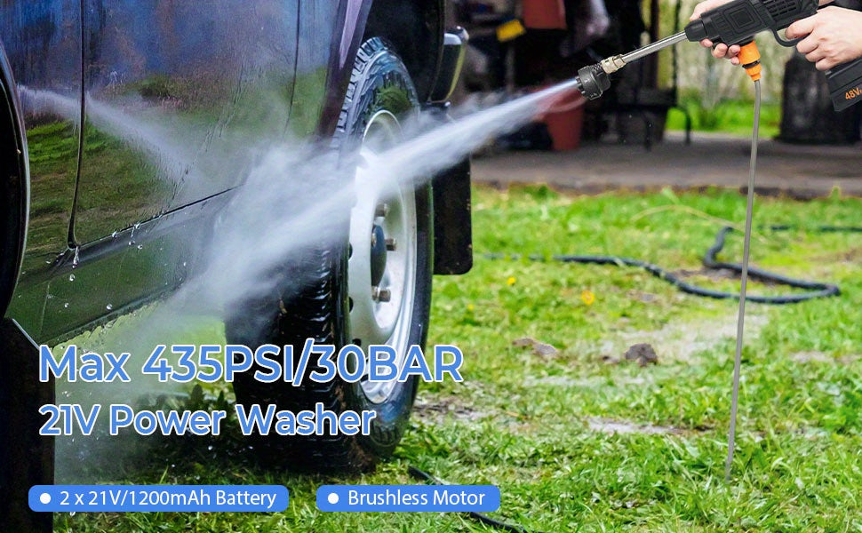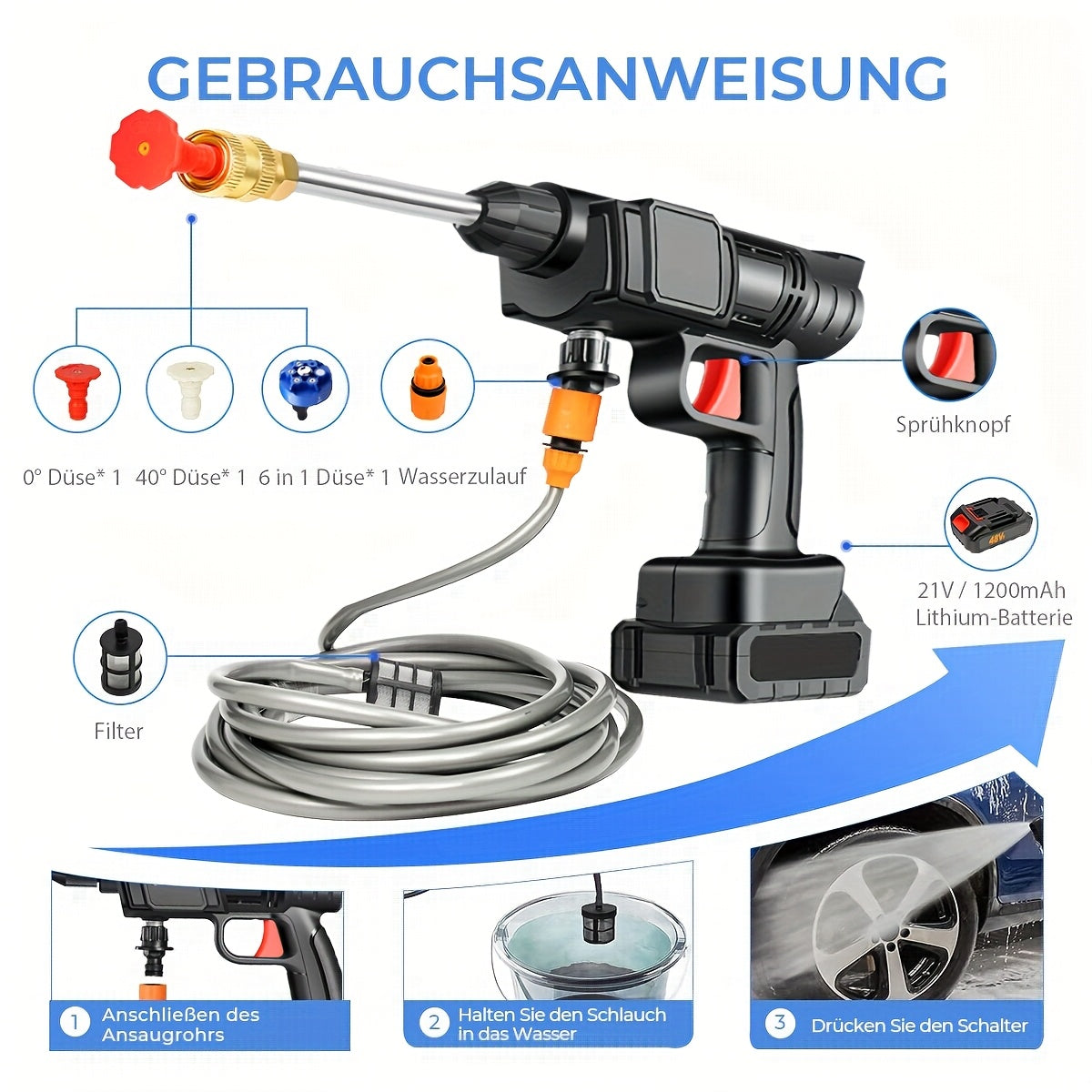 Lavadora de Alta Pressão Sem Fios 7MAGIC 6 em 1 com 2 Baterias e Caixa de Ferramentas - Recarregável, 100-240V, Plástico Durável, Multifunções para Manutenção de Relvados e Jardins, Pistola de Lavadora de Alta Pressão Sem Fios, Fácil de Usar
