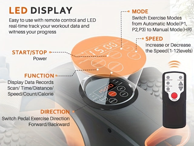 Actflame Under Desk Elliptical Machine, Electric Seated Pedal Exerciser for Seniors Fully Assembled, Stepper Sitting Leg Exerciser with Remoter, 12 Level Speed Forward & Reverse Direction, Manual & Auto Mode for Home Office,