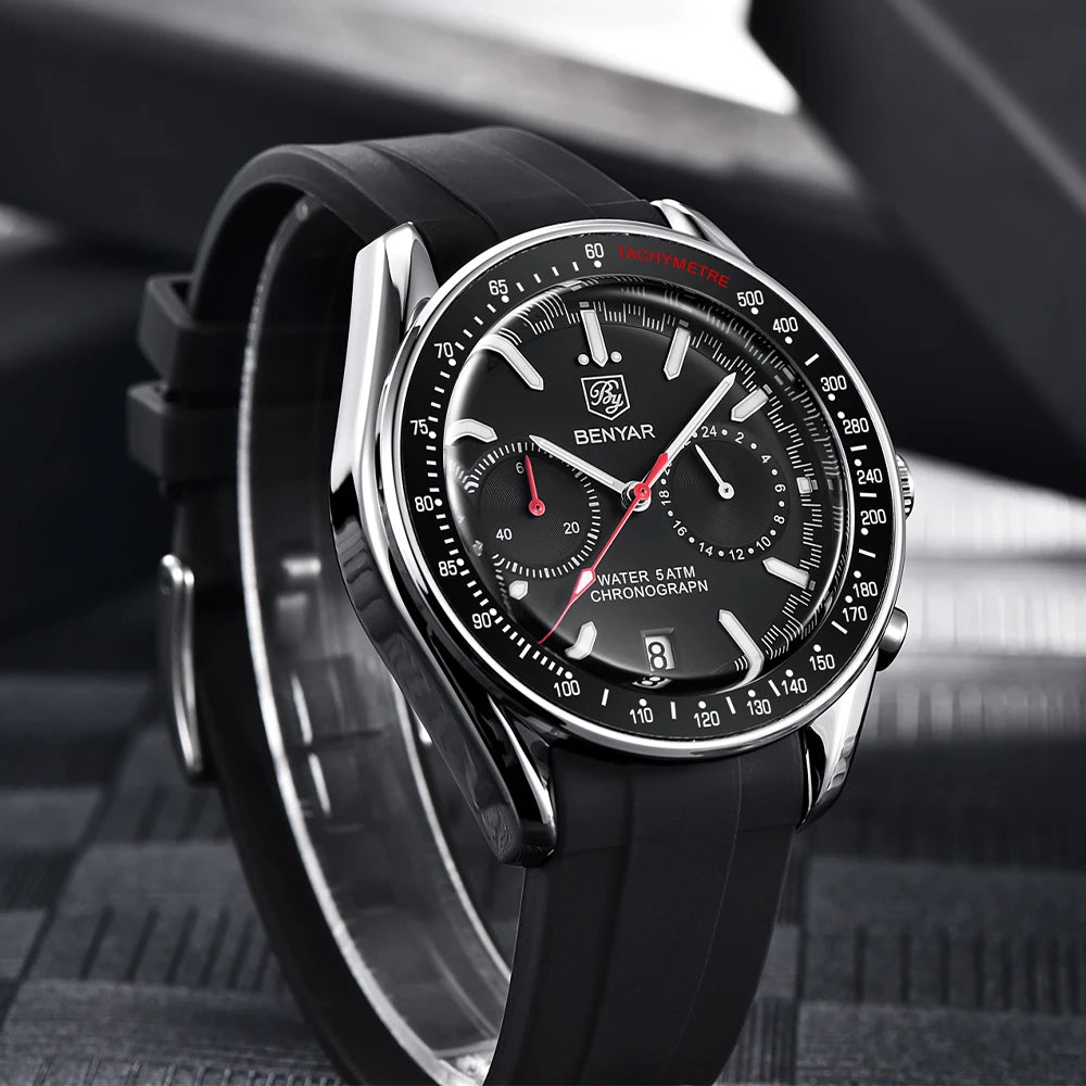 BENYAR Novo Relógio de Pulso de Luxo para Homem com Quartzo, Marca Topo, Resistente à Água até 50M, Bracelete em Aço Inoxidável, Relógio Cronógrafo Casual para Homem