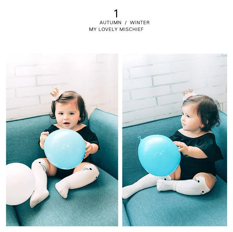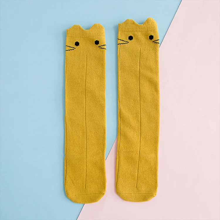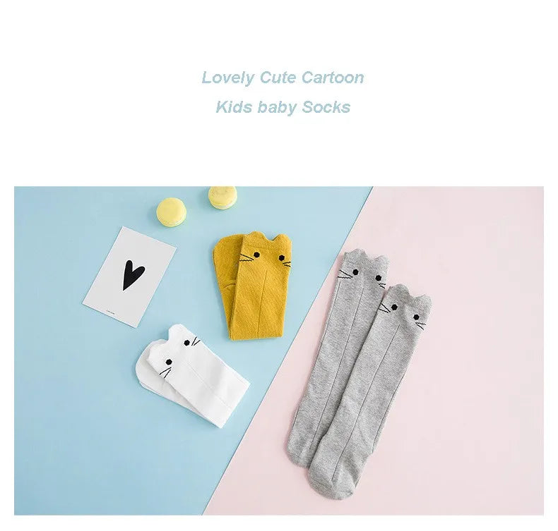 Meias de algodão para criança com estampado de desenhos animados BONYPONY, meias de algodão para bebé, meias compridas até ao joelho, aquecedores de pernas para meninos e meninas.