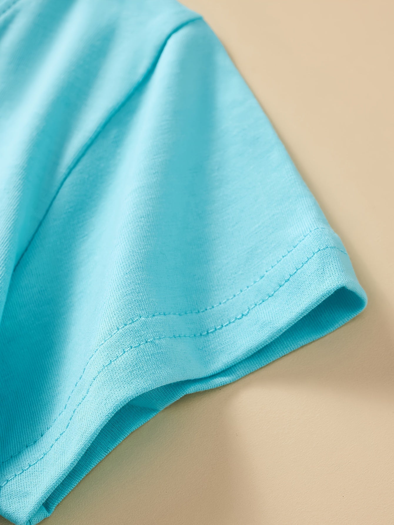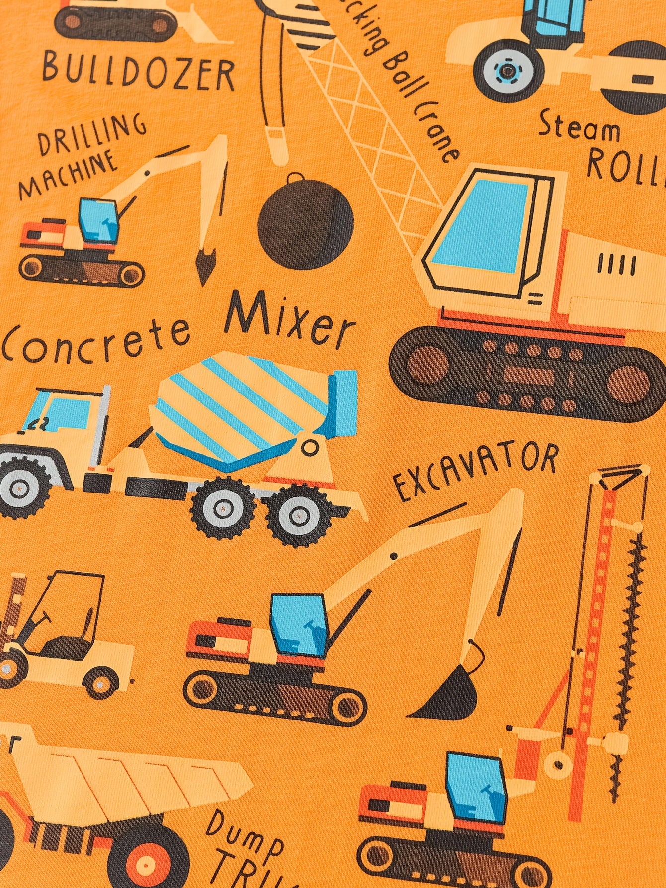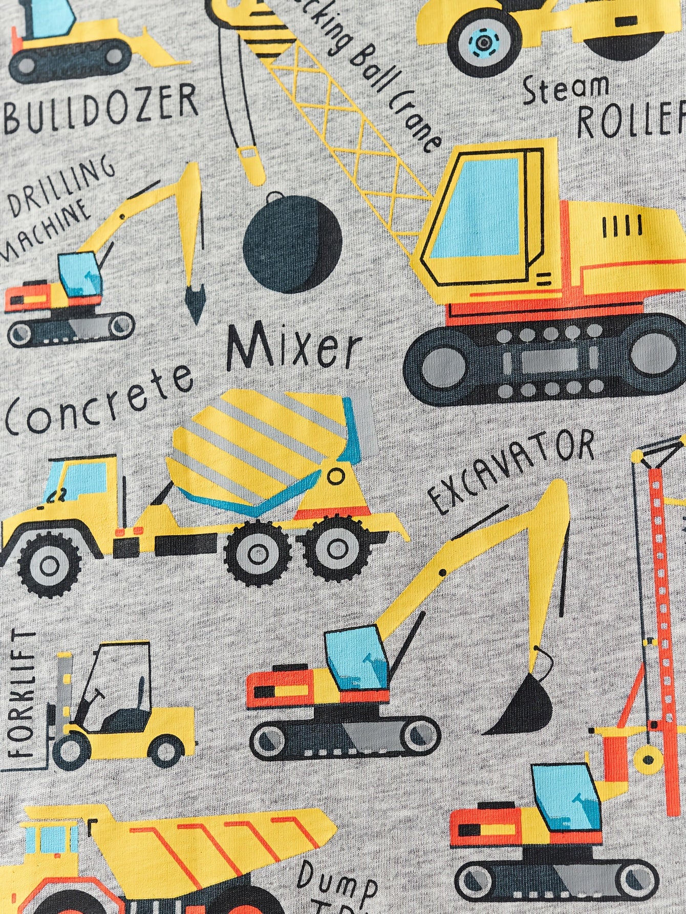 T-shirt de manga curta para criança em algodão com estampa de escavadora de desenho animado, respirável e moderna para o verão.