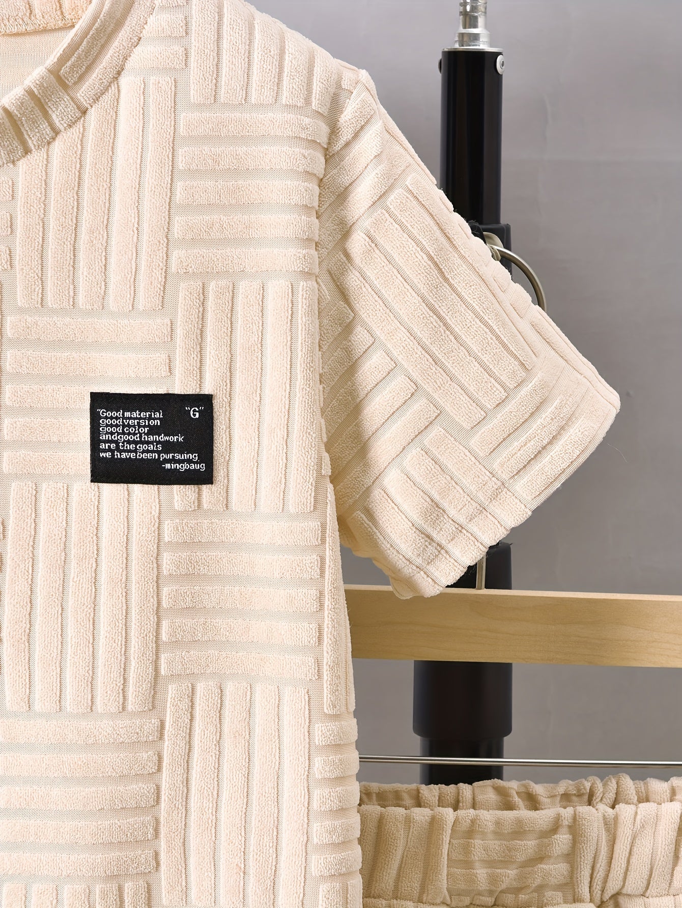 Conjunto de duas peças para menino, composto por t-shirt de manga curta com gola redonda e calções casuais, perfeito para atividades ao ar livre.