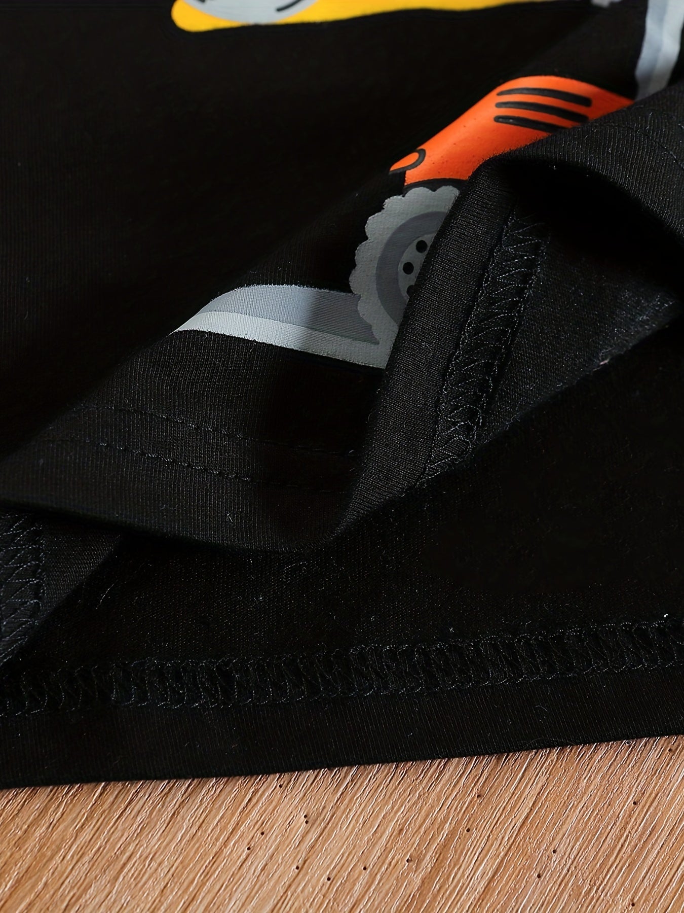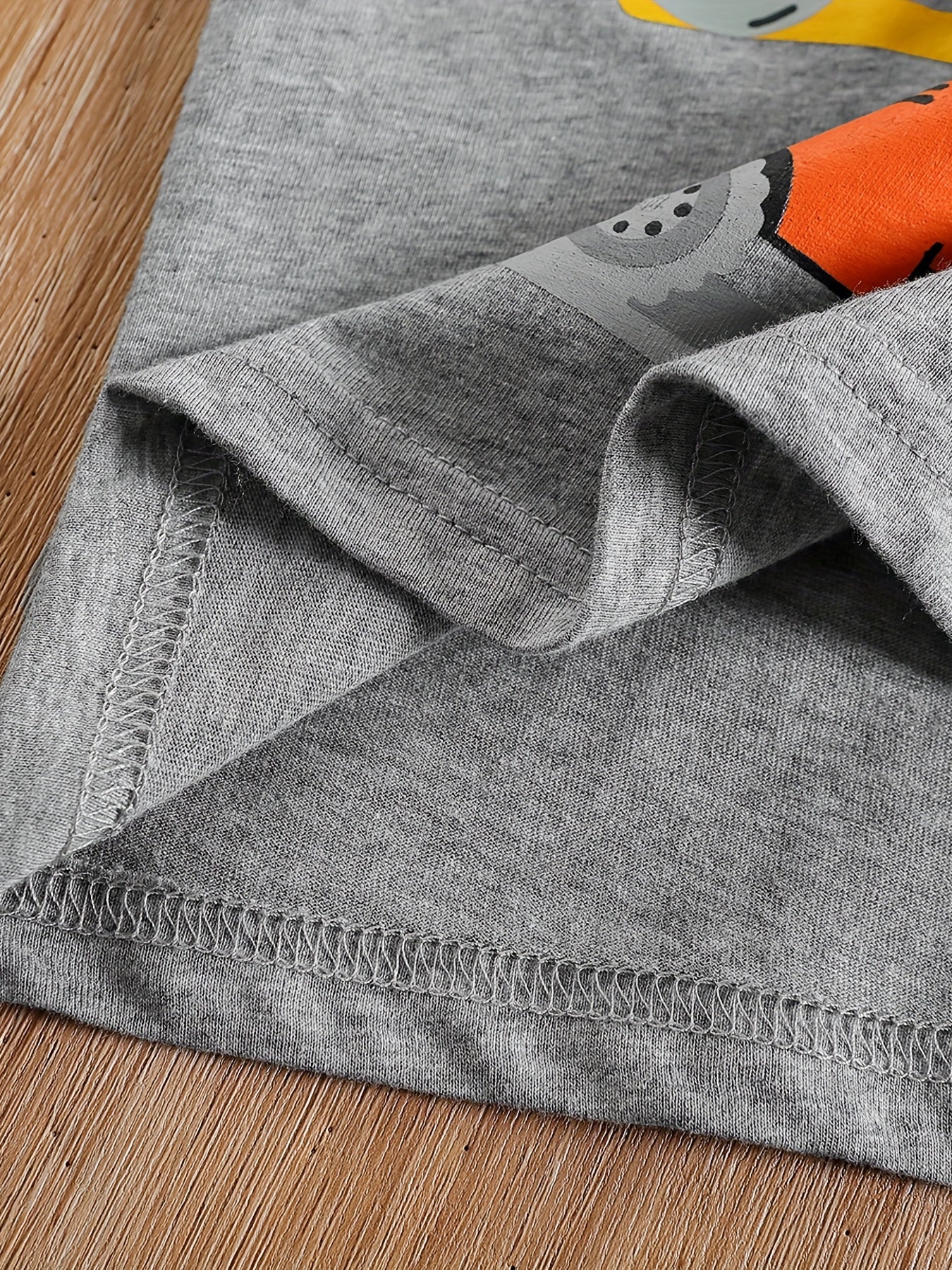 Conjunto de menino casual com estampado de tratores, composto por t-shirt de gola redonda e calções. Ideal para o dia a dia e para atividades ao ar livre.