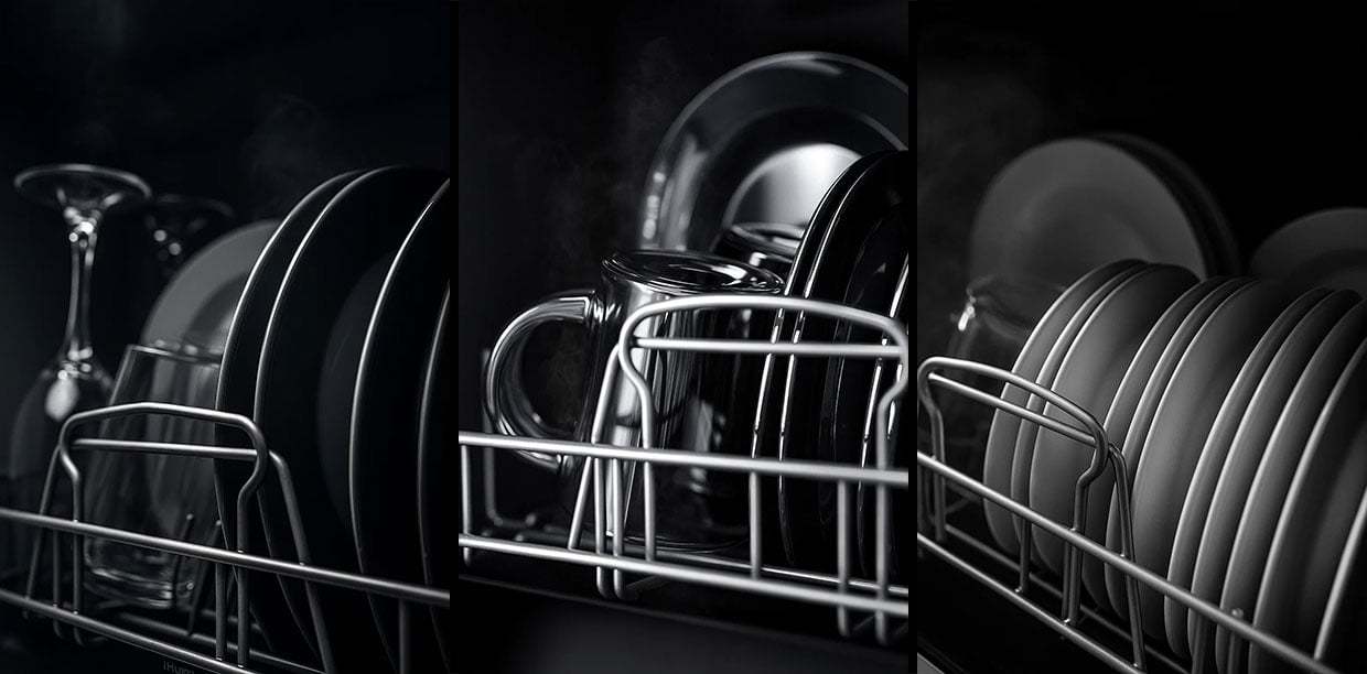 Máquina de lavar loiça compacta Ihunt Bro Xpert, Turbo Clean, 950W, com bomba de drenagem, controlo digital, classe B, 6 programas, aquecimento/secagem, torneira de abastecimento de água/manual, depósito de água de 5L, 45cm, branco