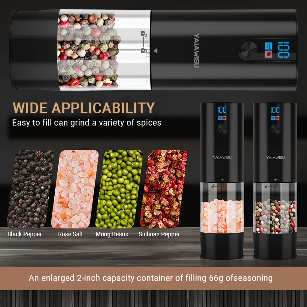 Conjunto de Moedores Elétricos de Sal e Pimenta - Moinho Pequeno para Uso Doméstico com Carregamento USB e Visor LCD - Moinho de Pimenta com Ajuste de Granulometria, Ideal para Cozinhas Domésticas, Restaurantes e Churrascos ao Ar Livre